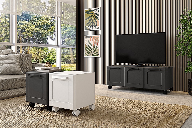 Entre os destaques apresentados está a Linha Multi, desenvolvida para ampliar a versatilidade na composição de ambientes. A linha combina estrutura em MDP com portas produzidas em aço tratado com pintura eletrostática, uma solução que une resistência e leveza visual em um design diferenciado. Os módulos contam ainda com rodízios com giro e travas, que facilitam a mobilidade e reorganização dos espaços. A proposta reúne módulos que podem ser utilizados em diferentes ambientes da casa, ampliando as possibilidades de organização e adaptação do mobiliário.
