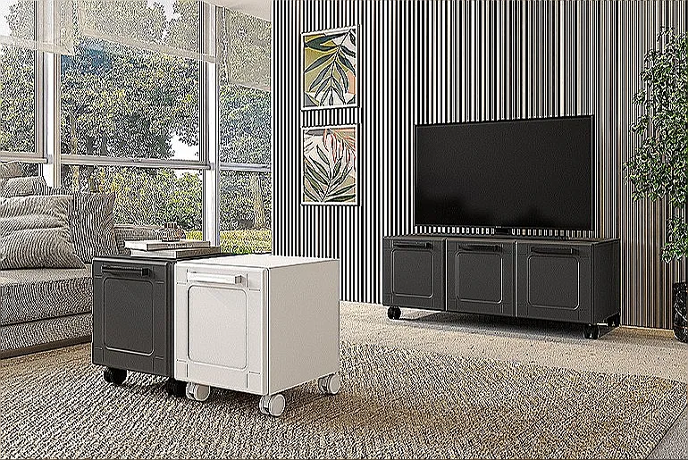 Entre os destaques apresentados está a Linha Multi, desenvolvida para ampliar a versatilidade na composição de ambientes. A linha combina estrutura em MDP com portas produzidas em aço tratado com pintura eletrostática, uma solução que une resistência e leveza visual em um design diferenciado. Os módulos contam ainda com rodízios com giro e travas, que facilitam a mobilidade e reorganização dos espaços. A proposta reúne módulos que podem ser utilizados em diferentes ambientes da casa, ampliando as possibilidades de organização e adaptação do mobiliário.
