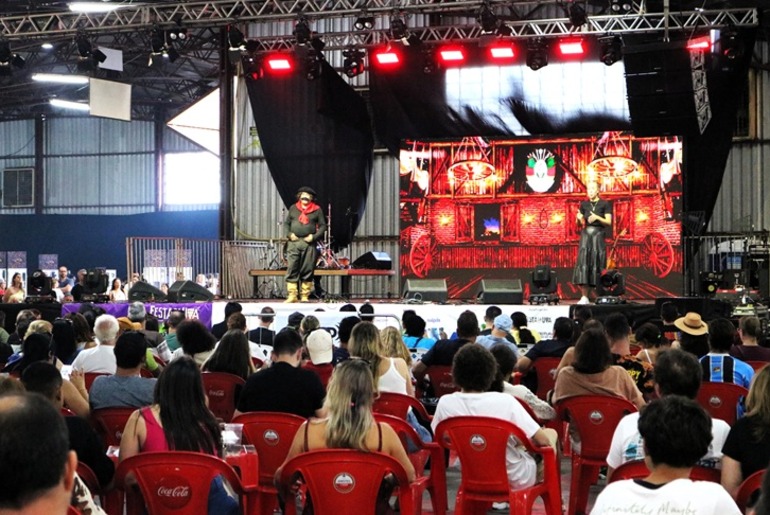 A experiência do visitante começa muito antes dos palcos principais. Durante todo o dia, o caráter itinerante da festa ganha vida com grupos como Ueba, GentEncena e Elas Elfas, que transformam os pavilhões em um cenário vivo de teatro e performance. Na Praça de Alimentação, a trilha sonora é um convite à celebração, variando entre o tradicionalismo de Baitaca e Grupo, o humor de Cris Pereira e o som contagiante da Banda Brilha Som.