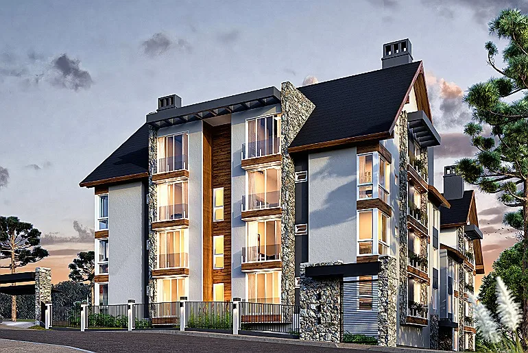 A arquitetura combina o charme da tradição alpina com elementos de design contemporâneo, criando ambientes acolhedores e elegantes. Acabamentos de alto padrão e atenção aos detalhes reforçam o foco no bem-estar dos moradores, em sintonia com o estilo de vida característico da cidade.