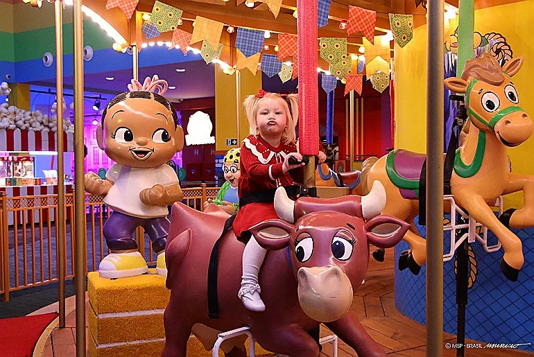 A imaginação segue ativa no Canteiro de Obras, espaço onde os pequenos vestem colete e capacete para explorar o universo da construção civil em atividades interativas. Entre as atrações clássicas do parque está também o Carrossel do Chico Bento, com esculturas da Turma da Roça espalhadas pelos assentos, de cavalinhos a vacas e bicicletas, criando um passeio repleto de referências à vida no campo.